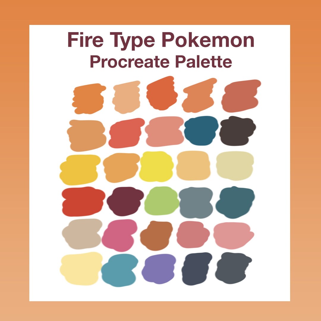 Fire Type Pokemon Procreate Palette Pokemon Inspired Swatches Charmander Charizard Colors Etsy